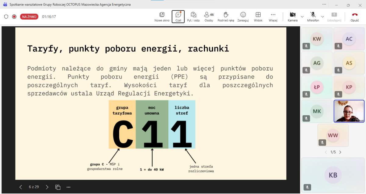 Spotkanie otworzyła Klaudia Wasilewska z Mazowieckiej Agencji Energetycznej, przedstawiając główne założenia projektu OCTOPUS finansowanego z programu LIFE. Celem inicjatywy jest przyspieszenie regionalnej transformacji energetycznej poprzez wdrażanie innowacyjnych rozwiązań i budowę sieci wymiany wiedzy pomiędzy regionami partnerskimi z siedmiu krajów Europy.